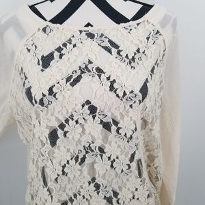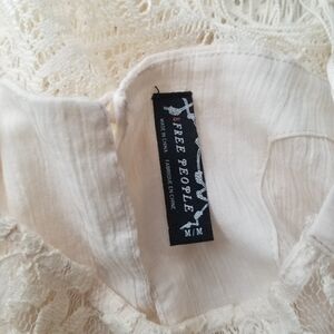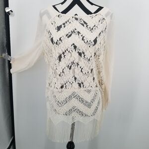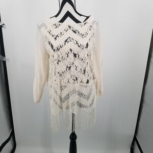 Free People Cream Lace Fringe Long Sleeve Boho Top