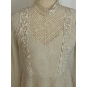 Free People Cream Lace High Neck Ribbon Blouse Sz Large