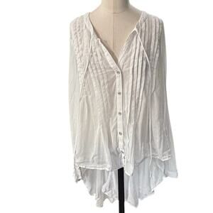 Free People Cream/ ivory Long Sleeve WHITE LIE High Low hem BlouseTop