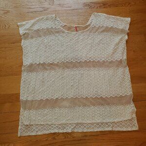 Free People Cream Mesh Crochet Oversized Blouse Size M sheer cutout Panels