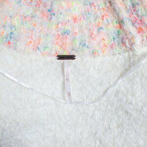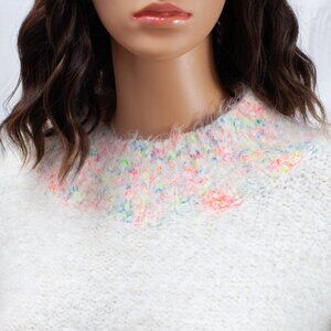 Free People cream color knit sweater, size XS. Soft, slouchy, and slightly cropped with colorful speckled trim at the neckline, cuffs, and hem. Cozy/plush textured knit with a relaxed, oversized fit. Brand new without tags.