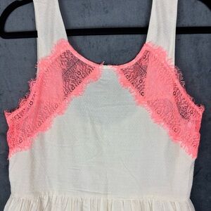 Free People Cream & Neon orangey-pink Sleeveless Mini Sundress