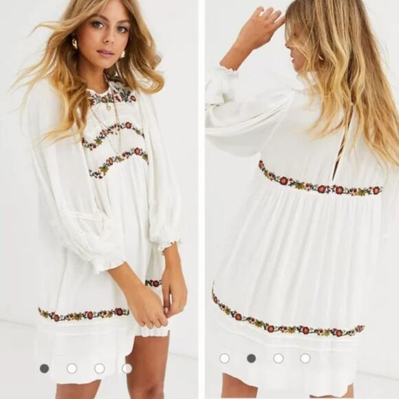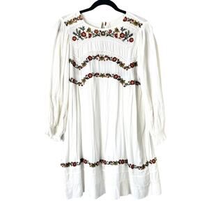 Free People Cream Pasadena Embroidered Ivory Mini Dress Size Small