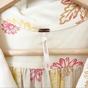Free People Cream & Red Combo Short Sleeve Blue Hawaii Mini Dress Size S