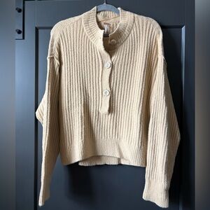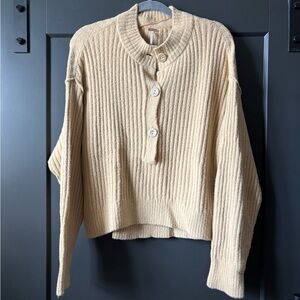 Free People Cream Ribbed Button Sweater