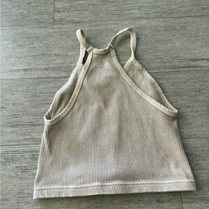 Free People Cream Ribbed Racerback Tank
