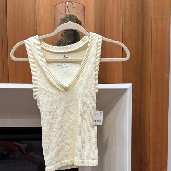 Free People Cream Ribbed Tank Top