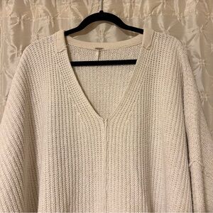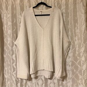 Free People Cream Take Over Me V Neck Oversized Sweater
