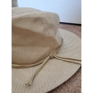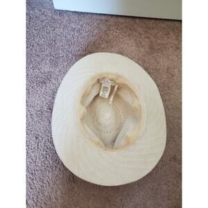 Free People Cream Woven Fedora Sun Hat Faux Leather Detail Women's One Size