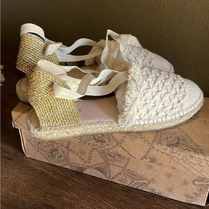 Free People Cream and Gold Espadrilles