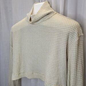 Free People Cream and Tan Cropped Waffle Knit Turtleneck, XS