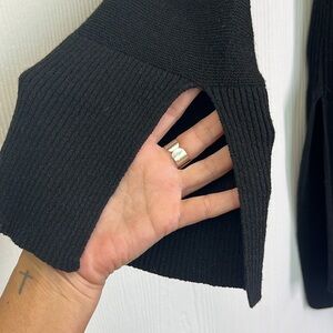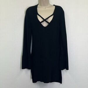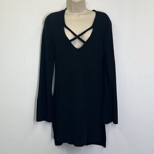 Free People - Criss Cross Black Linen Blend Slit Sides And Sleeves Sweater Small