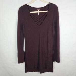 Free People Criss Cross Front Tunic Sweater Women S Boho Hi Low Side Split Brown