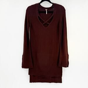 Free People Crisscross Tunic Sweater Dark Mocha XS
