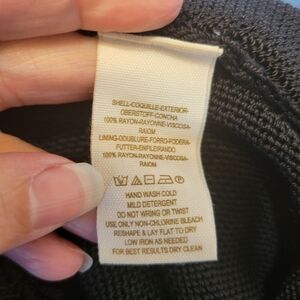 This dress is gorgeous! Scalloped crochet hem, has some weight to it. 100% Rayon, lined. Sleeves are long. Back zipper. Tiny flaw around skirt, please see pic.