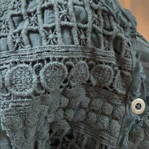 Free People Crochet Detail Black Cropped Buttoned-Down Top