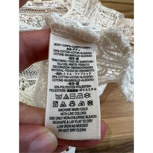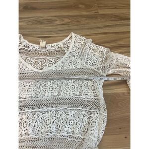 Free People Crochet Lace Boho Peplum Top size L . See pictures with measurements. Gently used preowned condition. Color maybe slightly different due to light