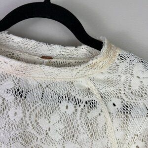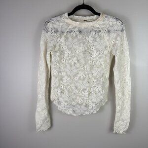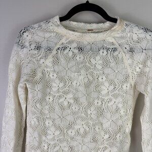 Free People Crochet Lace Long Sleeve Top Cream Boho Sheer Floral Knit XS