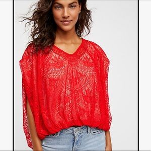 NWT ⭐️Oversized sheer crochet lace top featuring dropped armholes and a bubble hem.