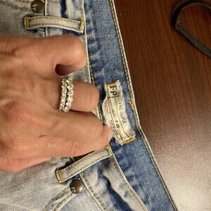 Free People Crochet Lace Trim Boho Denim Jean Shorts Womens Size 28 Button EUC
