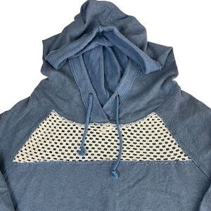 Free People Crochet Panel Blue Pullover Hoodie Sweatshirt Medium