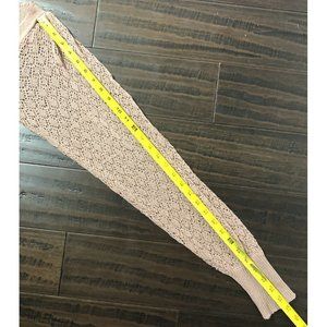 Free People Crochet Sleeve Sweater S Small Pink Mauve Open Knit Fitted Preppy
