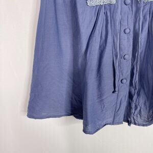 Free People Crochet Tank Top Flutter Open Back Button Front Blue Small S Cotton