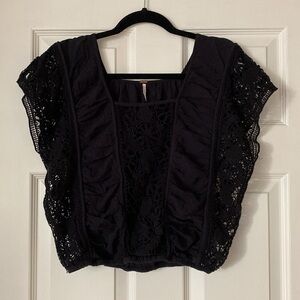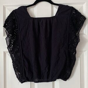 Xs, new without tags. Boxy fit! Cap sleeves, crochet detail throughout