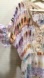Free People crochet trim button blouse with elasticized waist and three-quarter sleeves with elastic on sleeve trim. I noticed a small area with crinkle in the fabric (see pic) but blends in with the pattern. Cute boho festival vibes, lightweight semi sheer fabric in a bohemian southwestern multicolor pattern.