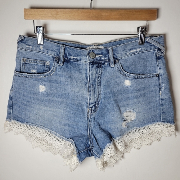 Free People Crochet Trim Denim Shorts Size 29 | Boho Summer Beachwear