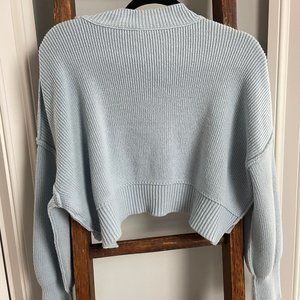 Details: Slouchy sweater in cropped silhouette and ribbed knit fabrication with mock neckline, hand-stitching