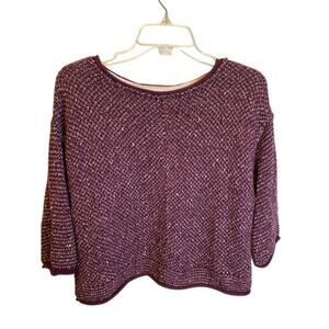 Free People Crop Sweater Purple Marbled 3/4 Sleeves Sz XS Oversized