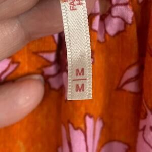 The Free People Miss Daisy Top in women's size Medium offers a charming and bohemian-inspired look in a vibrant orange with a floral print. This off-shoulder smock blouse features a relaxed fit and a comfortable smocked design, embodying Free People's signature carefree aesthetic. Perfect for warm weather, it combines a romantic silhouette with a playful pop of color.