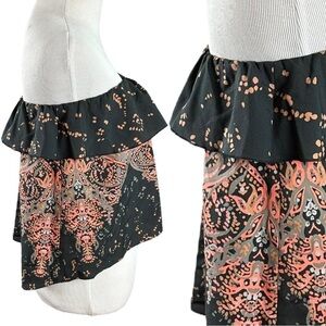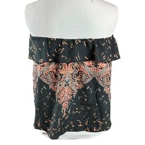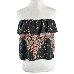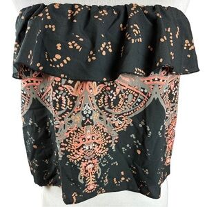 Free People Cropped Boho Flounce Ruffle Strapless Tube Top XS Black Coral Grey
