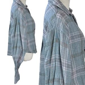 Free People Cropped Cutie Plaid Shirt in Stone XS