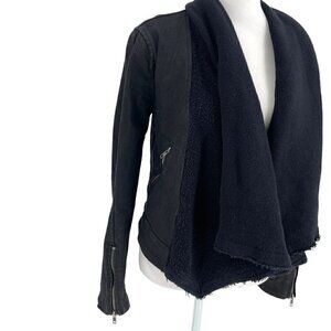 Free People Cropped Moto Drape Front Coated Open Biker Jacket Black size 2
