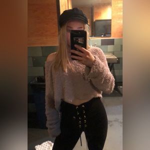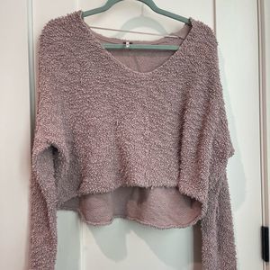 Free People Cropped Popcorn Pullover Sweater in Lavender Mauve - Size XS