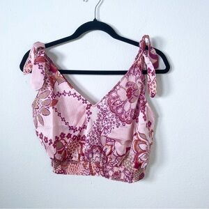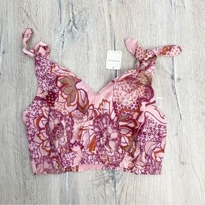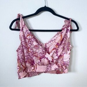 A true wear-everywhere essential, this sweet cami features a surplice-wrap silhouette with smocked waistband and femme tie-shoulder straps in a bright floral design.