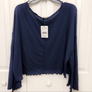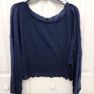 Free People Ceopped Tee in Blue size L Wide sleeves, cropped fit, and embroidered edges.