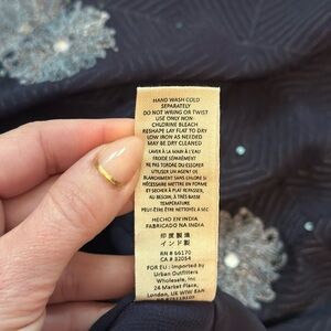 Free People Cropped Tie Waist Sequin Embroidered Navy Square Neck Blouse- Size M