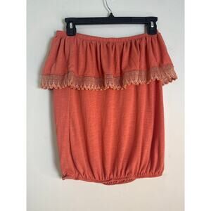 Free People Cropped Top Orange Off The Shoulder Boho Shirt Size Small