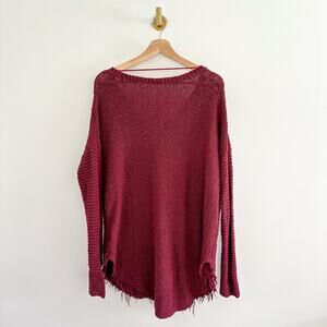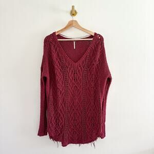 Free People Cross My Heart Cable Knit V-Neck High Low Hem Sweater Red L