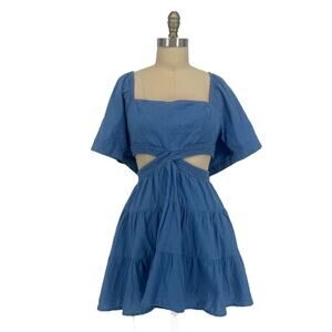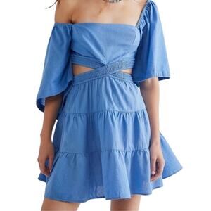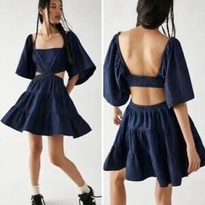 Free People Cross of Sunlight Cut-Out Mini Dress Medium Blue Arrow Linen Blend
