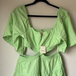 Free People Cross of Sunlight Mini Dress | Size Small | Green | NWT