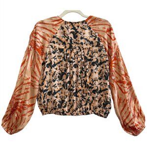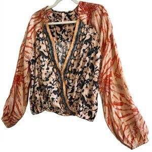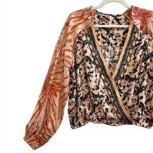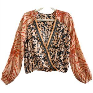 Free People Cruisin Together Orange Sheer Sleeve Wrap Blouse Size M Revolve
