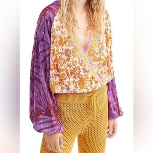 Free People Cruisin Together multi Print yellow and purple blouse size XS