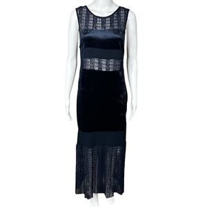 Free People Crushed Velvet Sheer Lace Blue Maxi Dress Large Fairy Witchy Gothic