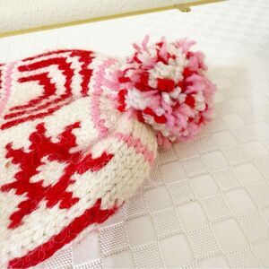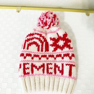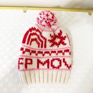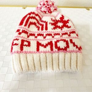 Free People Crystal Skies Pom Pom Winter Pink Red Beanie Hat