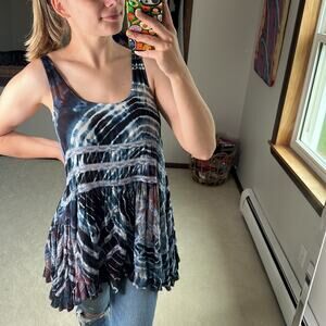 Free People: Custom Tie Dye Flowy Lace Tank Top