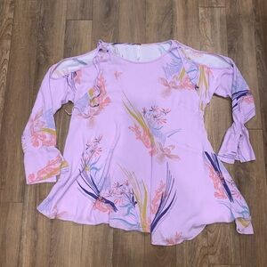 One shoulder ties and the other does not. Shoulders on both are cut out. Long sleeves with a cuff that cover your hands.